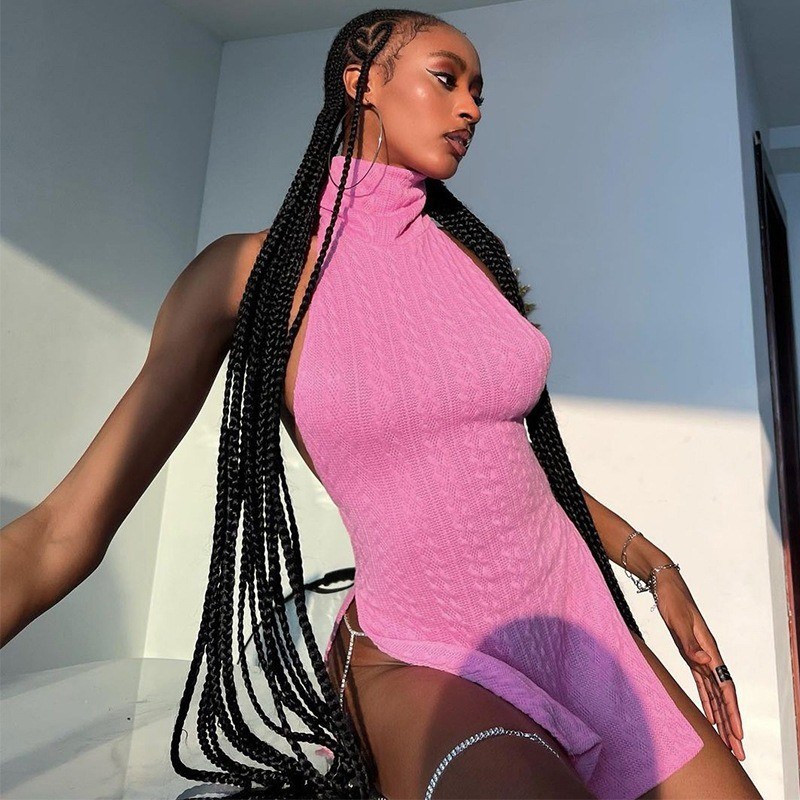 Vêtement de femme sans dos, sexy, à la tranche, mince, à tricot, sans manches