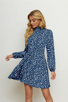 Ronde à col haut imprimé floral habillé mode femmes lanterne manches longues robe florale